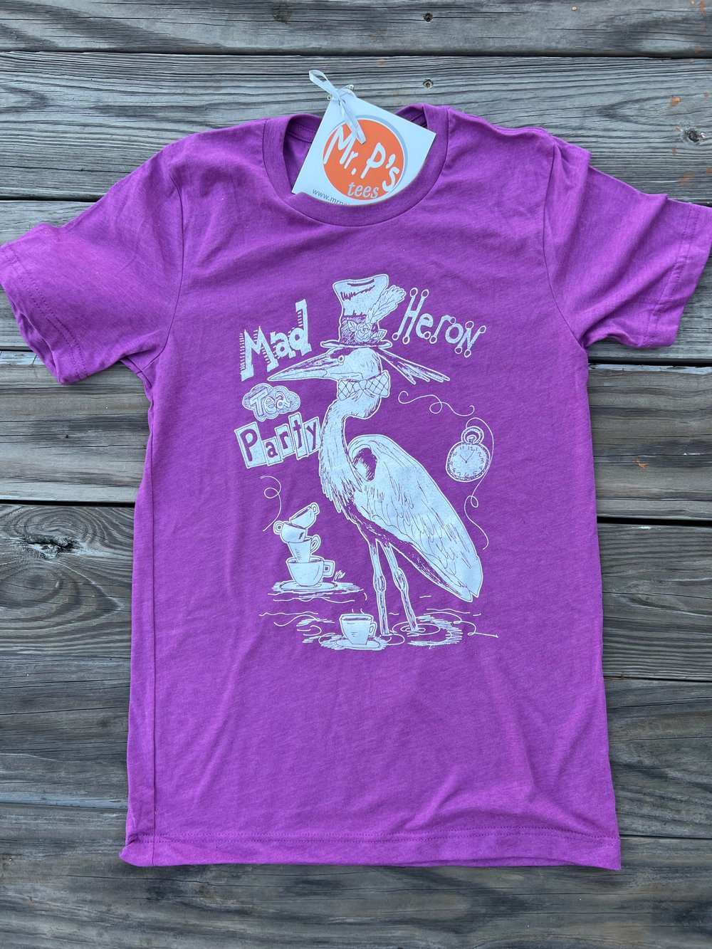 Adult Mad Heron Tea Party Tee in Heather Magenta