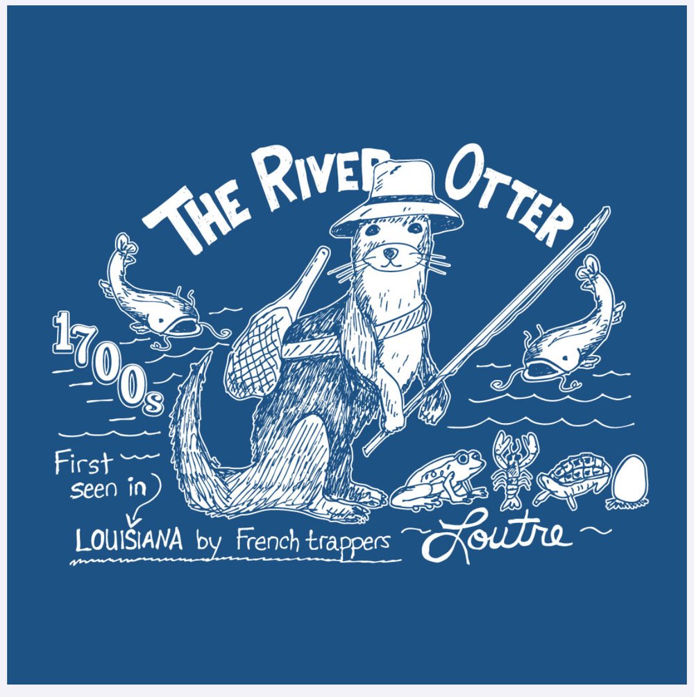 Yay!! We love a good River Otter from Louisiana. Original. Featured on a short sleeve crew neck blue tee. Next Level. 60% cotton, 40% poly. XS-3X. $28 + $2 for 2X and 3X.